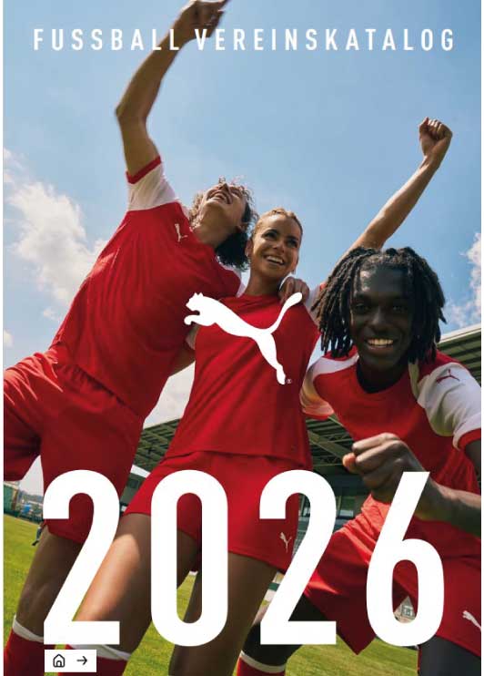 Puma Vereins Katalog 2026 mit den aktuellen Teamsport Linien teamCUP, teamFINAL, teamLIGA, teamLiga Frauen, teamGoal, teamGoal Frauen, teamRise, Winterartikel, Taschen, Bälle und vieles mehr können Ihr hier unverbindlich kostenfrei anfordern.